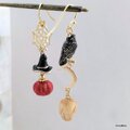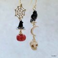 ハロウィンイメージのパーツをアシンメトリーにまとめたピアスです。