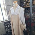 不動の人気を誇るワッシャーリネンにマキシ丈のエプロンドレスが登場しました。