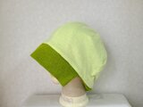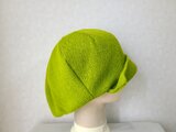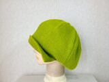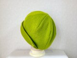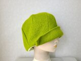 魅せる帽子☆天然素材が嬉しい♪ウールニット&コットンのリバーシブルクロッシュ~黄緑