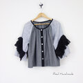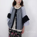 ダンガリーブラックと花形レース・ラッセルフリルの揺らぎ羽織りブラウス