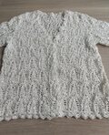 小さく丸いスパンコールが織り込まれている糸で、キラキラしていて、白色がワントーン明るくなっている作品です。