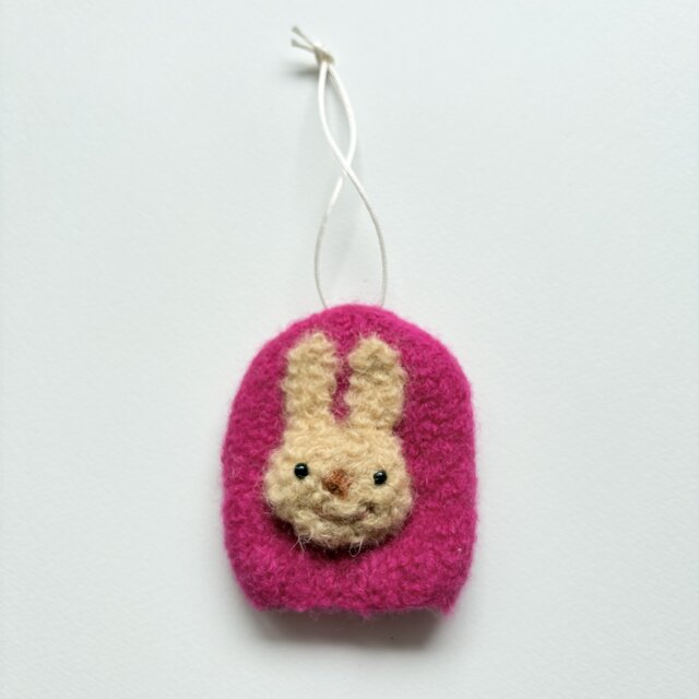 生地は、約2倍の大きさにメりノ毛糸を編んで縮絨させて(フェルト化)して仕上げました。