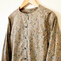 オリエンタルでモダンな雰囲気の生地で作った、スタンドカラーブラウスです。