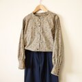 スタンドカラーブラウス oriental flowers ベージュM~Lサイズ