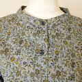 オリエンタルでモダンな雰囲気の生地で作った、スタンドカラーブラウスです。