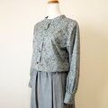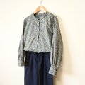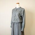 スタンドカラーブラウス oriental flowers ブルーグレーM~Lサイズ