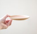 ちょっと小ぶりのケーキ皿の形に成形後、こっくりとした味わいのある桜色の釉薬をかけて焼き上げました。