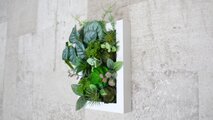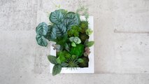 可愛らしい多肉植物と爽やかなグリーン、アーティフィシャルフラワーをアレンジしております