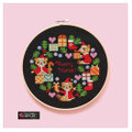 この図案はアップルミンツさん発行の「クロスステッチで楽しむ12ヶ月 季節のリース刺しゅう」の本のためにCRIE*CRIEが制作した作品から布色等をアレンジしたものです。