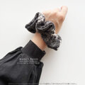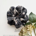 《上品な花模様 織り》おしゃれな チャコールグレー ナチュラル ラメ アイボリー 厚手系 ボリューム シュシュ ヘアゴム