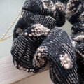 ⭐️《上品な花模様 織り》おしゃれな チャコールグレー ナチュラル ラメ アイボリー 厚手系 ボリューム シュシュ ヘアゴムです♪