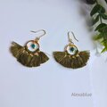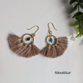 秋冬の装いにぴったりな、ミリタリーグリーンとベージュのタッセルピアス。