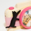猫がレンズにじゃれているような、愛らしいデザインのカメラ型ミニフォトフレームです。