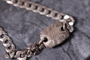 チェーンの太さもユニセクシャルに着けられるように苦心しました。この太さなら日常使いでブチッといくことも少ないはずだし。