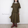 カーキコットンリネン・ボックスタックスカート(セットアップ可)