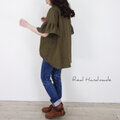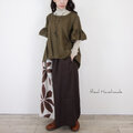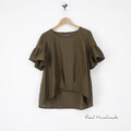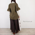 カーキコットンリネン・イレギュラーヘム袖フリルプルオーバー(セットアップ可)