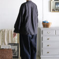 さらさらとしわ加工の施された爽やかなカラーのシャツ、とても着心地がよく初秋にありがたい逸品でした。