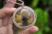 大輪の花★タイタンルチルクォーツ マクラメネックレス2093