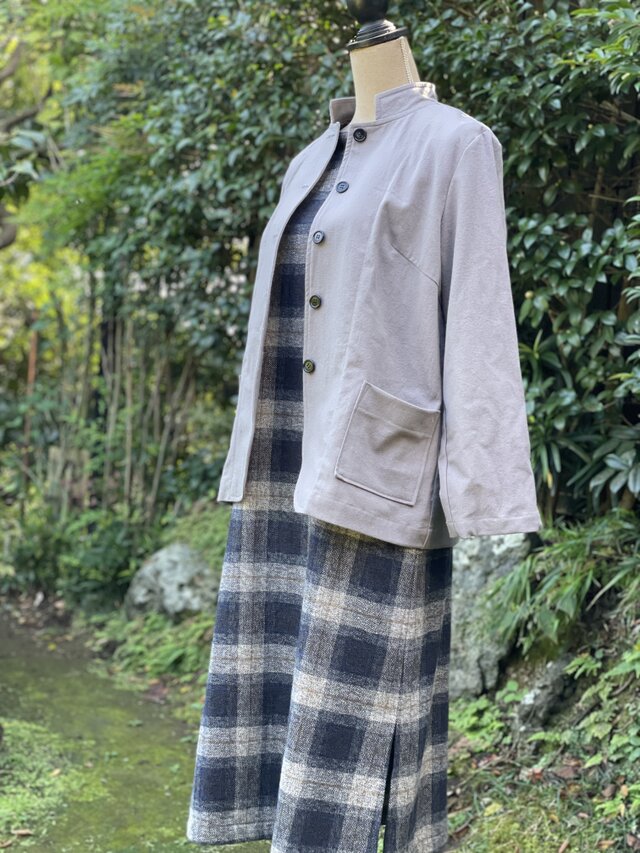 少しシェイプしたウエストと前裾の曲線カットがスタイリッシュなジャケット。