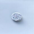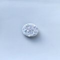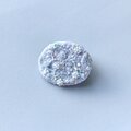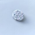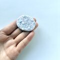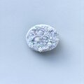 横に楕円形のオーバル型のブローチでとても軽いブローチです。白さの中に少しずつ淡いピンク、グリーンを散りばめています。左側の丸いビーズはアクアマリンの天然石ビーズを、全体に透明感と輝きの違うガラスビーズを使っています。