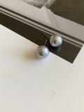 国産の人工真珠製造工程によるもの(原珠の通ったワイヤーを木枠に間隔を空けて張り、パールエッセンスの水槽に木枠ごと浸しては乾燥室で乾かす、という大変手間のかかる工程を繰り返すことで真珠層が作られます。)となりますので、ワイヤー跡のホールが大きく塗装の処理が安定しておりません。