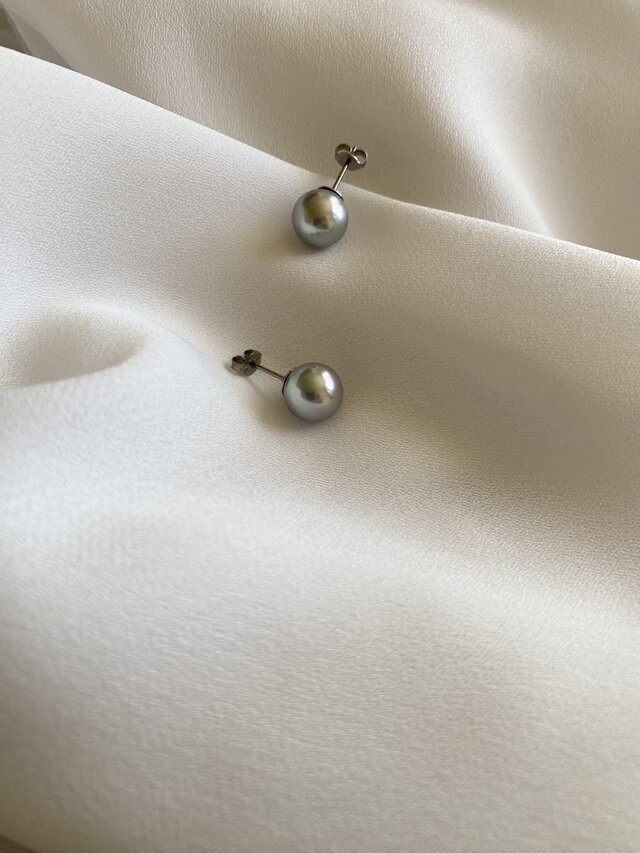 ナチュラルブルーグレーシェルパール(貝ミガキ)9mm 一粒パールスタッドピアス