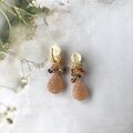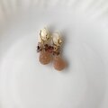 お花のカービングが施されたピーチムーンストーンに、小粒のマルチカラースピネルをあしらった、大人可愛いイヤリングです。