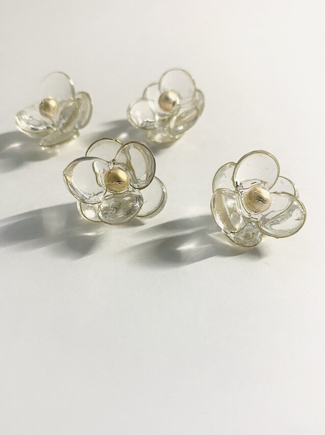 レジンの花びらを重ね合わせたシンプルで可愛いらしいピアスです。