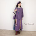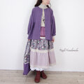 [Coordinate] アンティークフラワーとモーブリネンのパッチワーク・マキシキャミワンピース(リンクコーデになります)