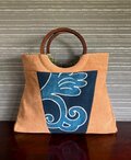 いつも素敵なバッグをありがとうございます。今回も大満足です。柿渋染めとバティックの渋い柄の取り合わせが絶妙です。丸い木の取手は持ちやすく、アクセントのボタンもいい感じ。華美さんのバッグはとてもセンスが良い上にこまかいところまで配慮が行き届いており、大変丁寧なお仕事です。またご縁がありましたらよろしくお願いします。