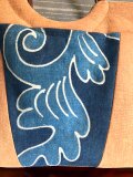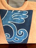 古布の酒袋に古布の筒描きを剥ぎ、三角のマチの手提げにしました。