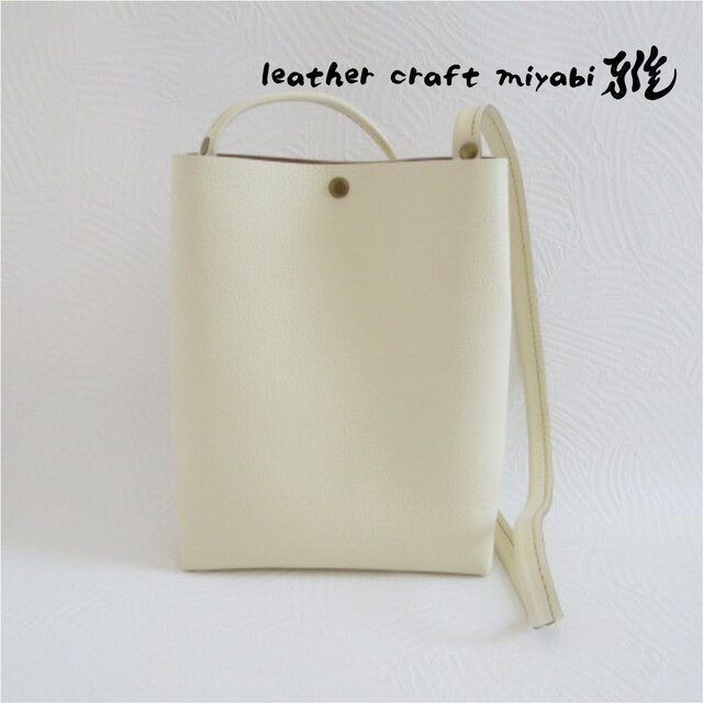 SALE開始~ ぷっくり三角マチ♪《牛革》BOXサコッシュ・シュリンクレザー・アイボリー・0132