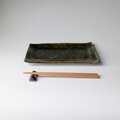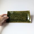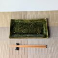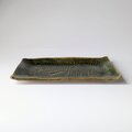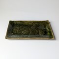 深みのある緑釉が美しい、織部釉の長方皿です。
