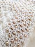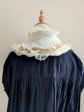 本品は手編みニット生地にビーズなどのトッピングを多数縫いつけているデリケートな作品となっております。また、収縮率の異なるエコファー裏地もつけておりますのでお洗濯不可となります。
