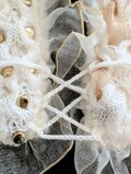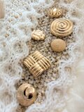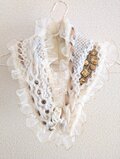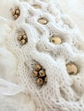 オフホワイトのベースに、ゴールドのビーズやボタン、リボンなどを自由にトッピングしました。