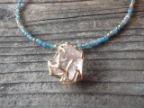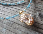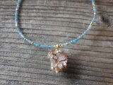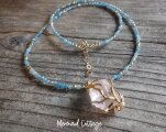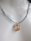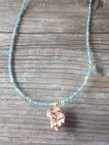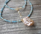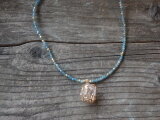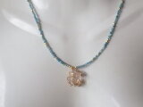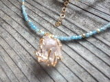 アパタイトのネックレスに、ローズクォーツのラフロックをトップに添えた、海を愛するすべての人へ贈るお守りネックレスです。