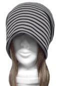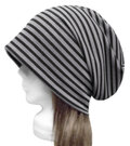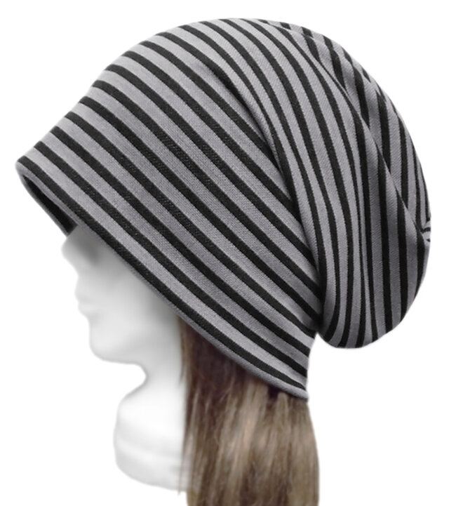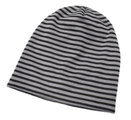 ルーズワッチキャップ◆コットンウール ボーダー柄ジャガード織ニット/グレー×ブラック ◇ゆったりサイズ・小顔効果◇