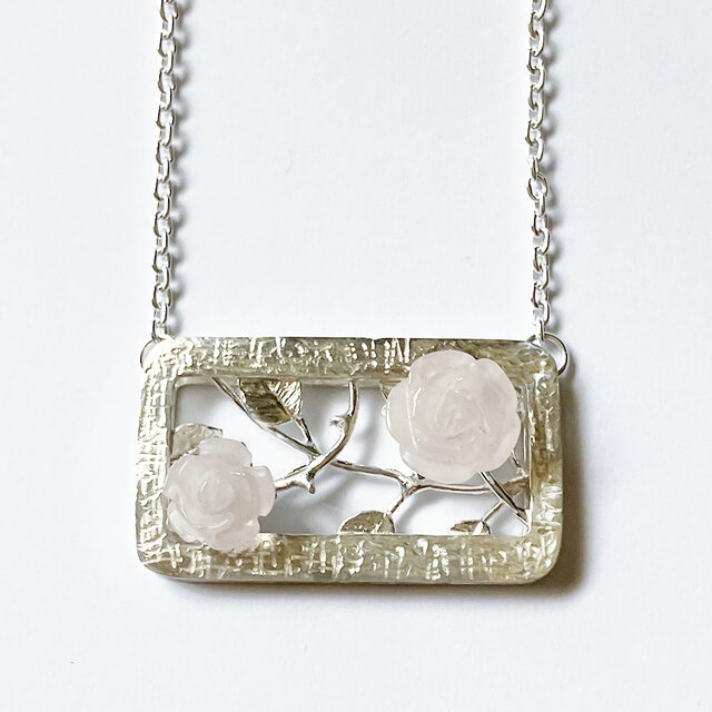 天然石をカービングして作り上げられたバラをメインストーンにしたシルバーペンダント