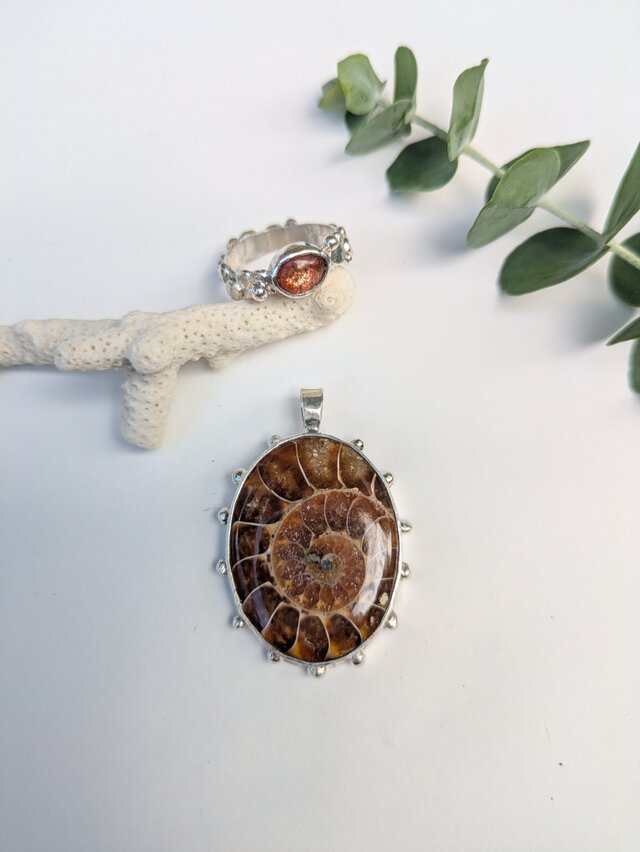 綺麗なオーバル型にシェイプされたアンモナイトをsilver925でペンダントヘッドに仕立てました。