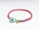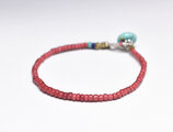 アンティーク金赤ホワイトハーツと一粒ターコイズブルーシェブロンを繋いだブレスです。