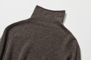 16マイクロンという極細糸を編み立てたハイネックニットは、着ぶくれない適度な厚みなのに驚くほどのぬくもり。カシミヤならではの吸湿性のおかげで、汗ばんでもちくちくすることなく常に快適な着心地。