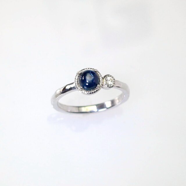 太陽光やペンライトを当てるとスターが現れる1ctUPのスターサファイアをセットしたリングになります。