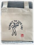 刺繍されたのは、「Submit to the cat(猫に従え)」というメッセージと、人間が猫をうやうやしく抱き上げるピクトグラム。シンプルなのにどこか微笑ましく、まるで“人と猫の絆”そのものをデザインに閉じ込めたようです。