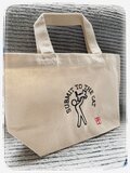 厚手のコットン生地で作られており、毎日の散歩やお出かけにも頼れる丈夫さ。財布やペットボトルが収まるサイズ感で、お散歩バッグとしてはもちろん、カフェやお買い物にもぴったりです。