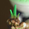 苗を掌で優しく包んで、元気に育つことを祈っています。