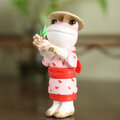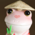田植えをする時の衣装をまとった、昔懐かしい早乙女姿のカエルの置物です。