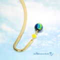 小粒なイエローのキャツアイガラスがホタル玉を引き立て、ゴールドのマーカーをさらに華やかに♪