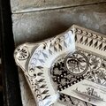 ずっと気になっていたお皿 届きました なんかクリスマスにぴったりな感じ 小ぶりながらも、存在感が凄い さっそく、チョコがけのマロングラッセ 置いてみました テーブルの主役、真ん中に置きたい 微かに少しだけ残った金彩が愛おしいです