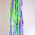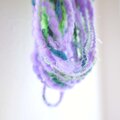ポイントに入れたラメファイバーや巻毛が手紡ぎ糸の個性となっています!