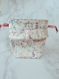 リバティ Wildflowers【オフホワイト&ピンク】フリル巾着ポーチです。